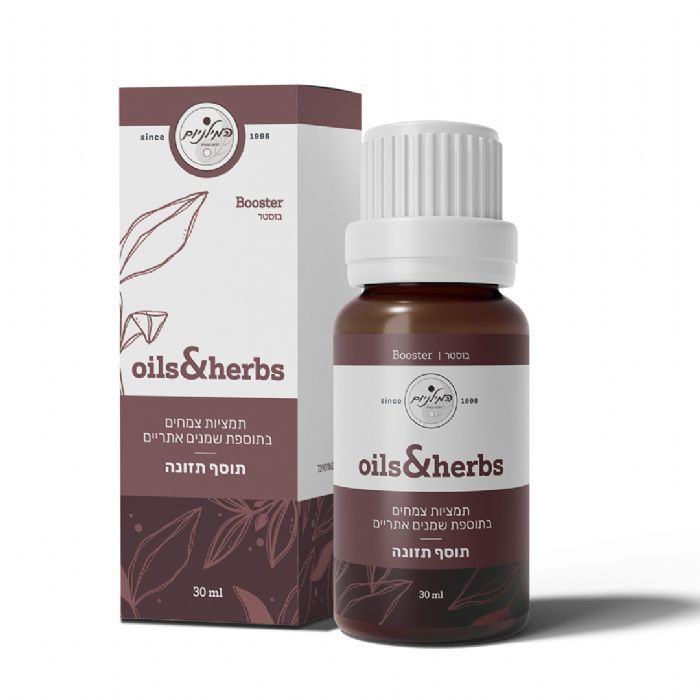 Oils&Herbs בוסטר - תוסף תזונה ייחודי המבוסס על שמנים אתריים ותמציות צמחים הנפוצים בארומתרפיה וברפואת הצמחים המסורתית. השילוב בין הרכיבים נועד לתמיכה טבעית במערכת הנשימה ובתחושת רווחה כללית.