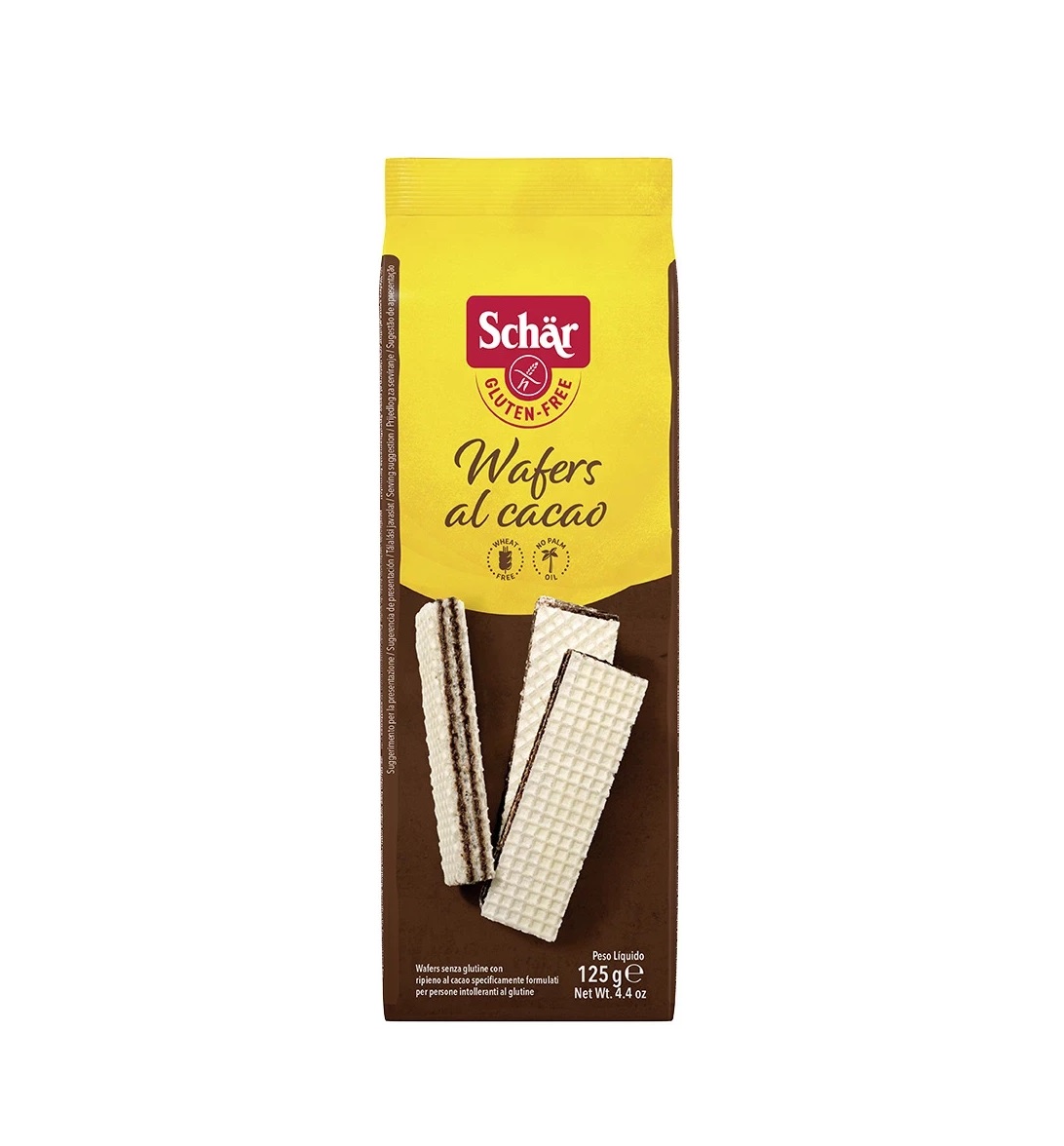 וופל קריספי ללא גלוטן עם מילוי קקאו עשיר (39%), לנשנוש או פינוק בכל זמן. .