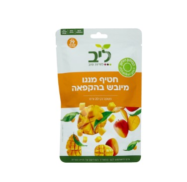 חטיף מנגו מיובש בהקפאהם חטיף מנגו קראנצ’י עם מתיקות טבעית וטעם טרופי עשיר. עשוי מ-100% מנגו ומיובש בהקפאה בטכנולוגיה ייחודית השומרת על טעם הפרי והמרקם הקריספי, ללא טיגון וללא אפייה. פתרון מושלם לנשנוש מתוק, טבעי ומזין, שנוח לקחת לכל מקום.