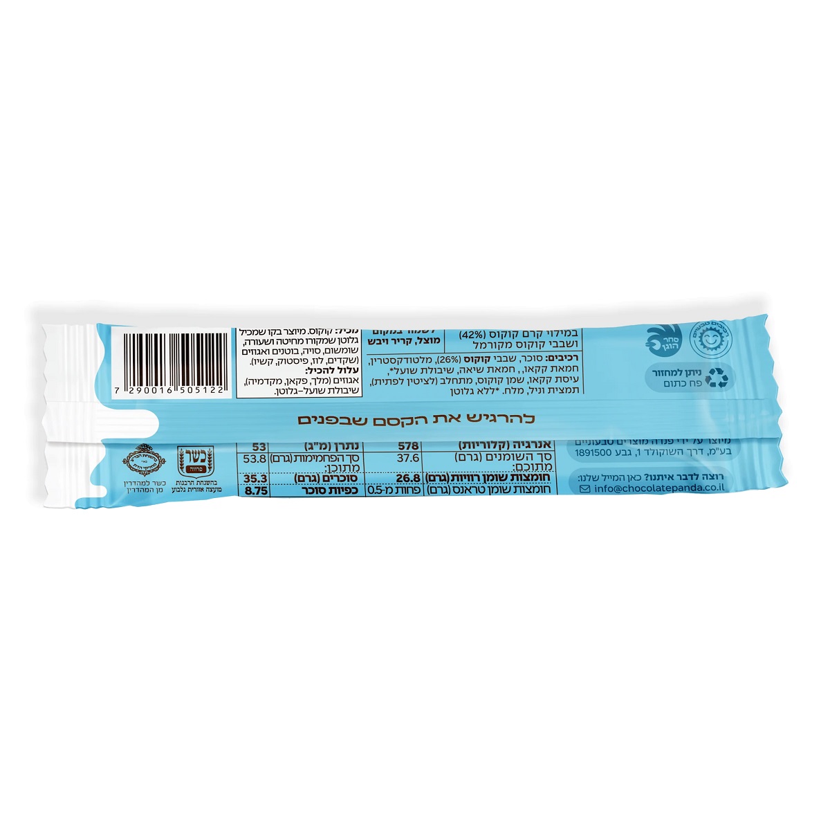 חטיף טבעוני בטעם שוקולד במילוי קרם קוקוס ושבבי קוקוס מקורמל. חוויה מתוקה ומרגיעה, מושלמת לנשנוש, פינוק קל או כתרומה למתיקות היומית.