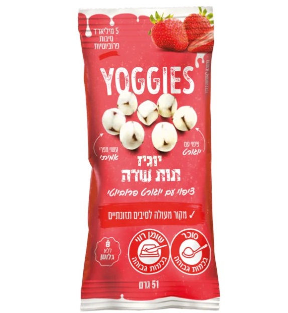 חטיף יוגיז בטעם תות שדה מציע שילוב של טעם מתוק ורענן המבוסס על פרי אמיתי. מתאים כנשנוש קל במהלך יום העבודה, כפינוק לאחר פעילות גופנית או כקינוח אישי מזין.