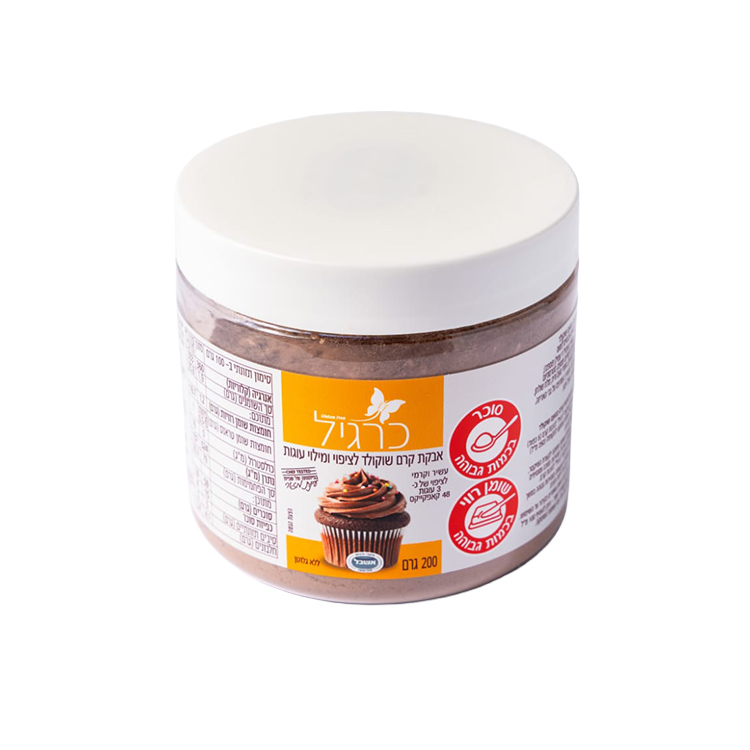 אבקת קרם שוקולד ללא גלוטן, המיועדת לציפוי ומילוי עוגות. הקרם יוצר מרקם חלק וקליל עם טעם שוקולדי עשיר, להשלמת קינוחים במראה וטעם מושלמים.