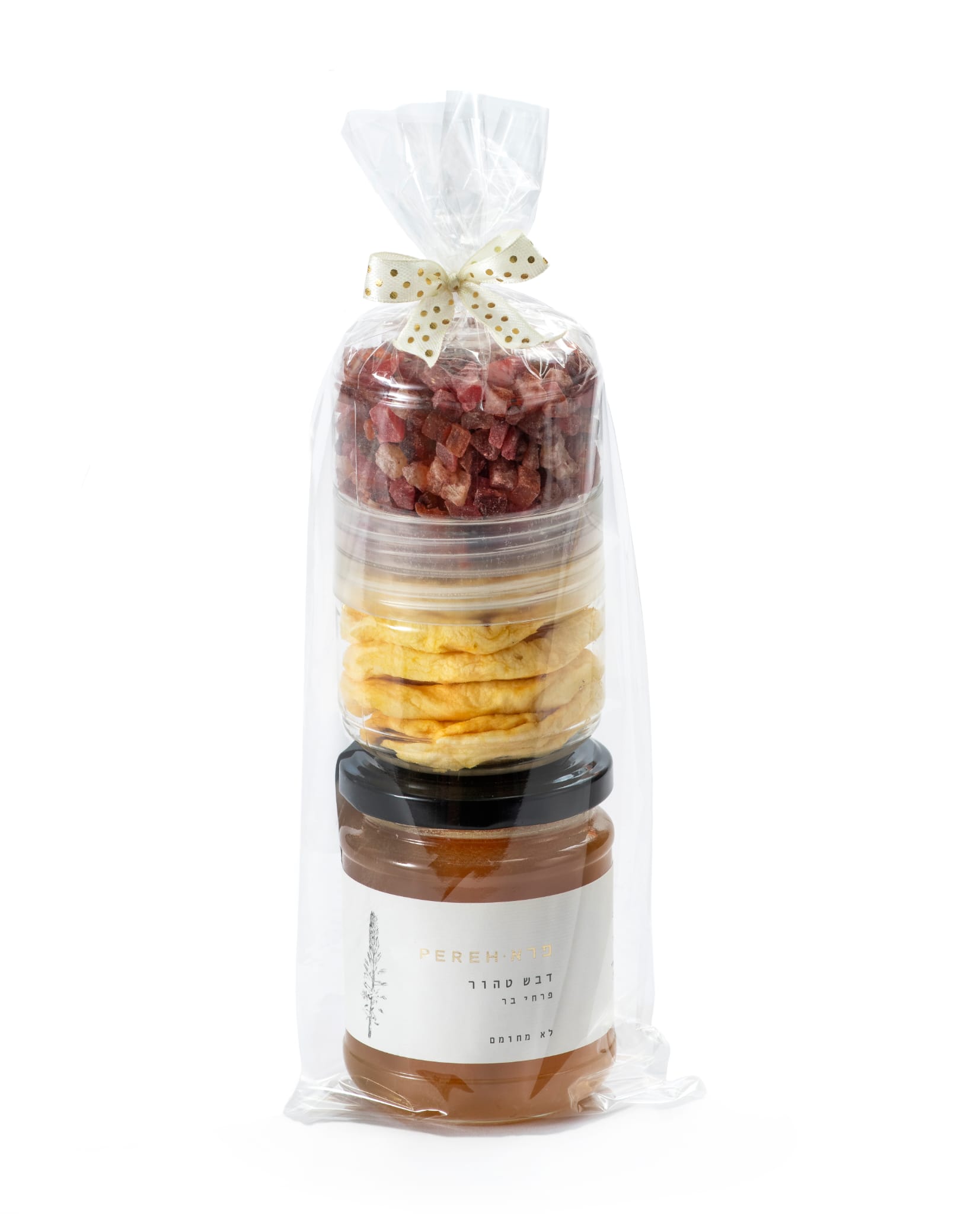 מארז טבעי וקליל, המתאים לפינוק מתוק ובריא עם שילוב של דבש, פירות מיובשים ותה.
