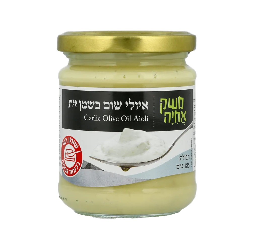 איולי שום בשמן זית של "משק אחיה" הוא מוצר פרימיום המציע פתרון פונקציונלי למחפשים ממרח בעל רכיבים טבעיים בלבד. האיולי מתאפיין בפורמולה נקייה (Clean Label), ללא חומרים משמרים או צבעי מאכל, ומבוסס על 55% שמן זית איכותי המעניק לו מרקם קטיפתי ועשיר. השילוב של 17% שום מטוגן מעניק עומק טעמים קרמלי ומאוזן, ההופך אותו לרכיב אידיאלי לשדרוג כריכי גורמה, דגים צלויים וירקות קלויים. בזכות האיכות הגבוהה של חומרי הגלם, הוא פועל כמשדרג טעם מיידי המספק תוצאה של מטבח שף בשימוש ביתי יומיומי.