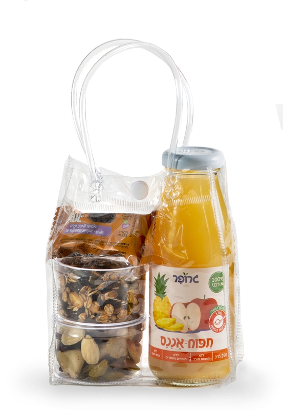 משלוח מנות לפורים - אלה מארז אישי ומאוזן, עם שילוב של מתוק, פריך ומרענן. ארוז בתיק נשיאה שקוף ומתאים כשי קליל לפורים - לעובדים, לצוותים או כמתנה אישית.
