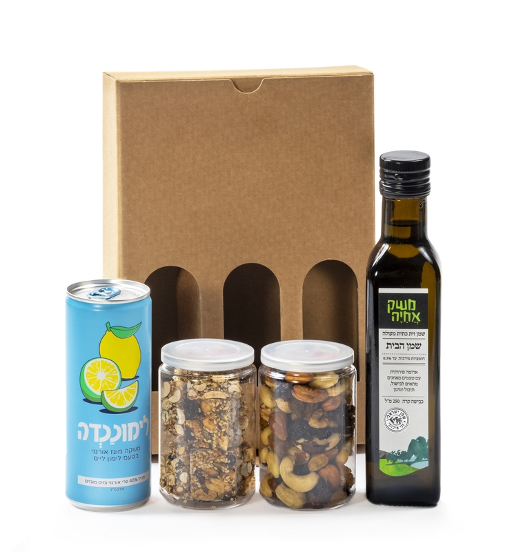 מארז פורים מוקפד בקופסת קרטון טבעית עם חלונות תצוגה, המדגישים את תכולת המארז ומעניקים לו מראה מסודר ואיכותי. שילוב של מוצרים בריאים עם נשנושים נבחרים, כשי אלגנטי שמתאים למגוון קהלים.