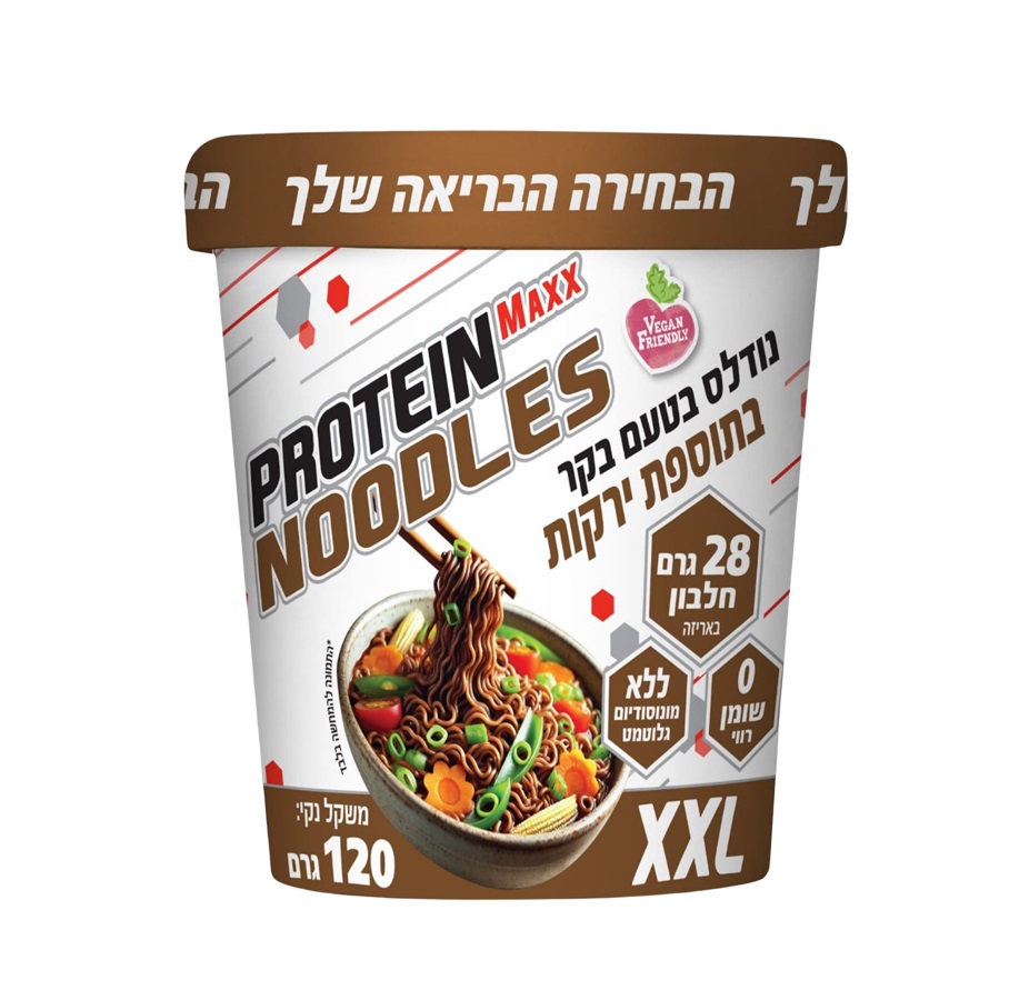 פרוטאין מקס נודלס בטעם בקר בתוספת ירקות - ארוחה משביעה ומהירה המכילה 28 גרם חלבון בקופסה אחת. מוכנה תוך 5-7 דקות: הוסיפו מים חמים, המתינו ותיהנו מארוחה מפנקת.