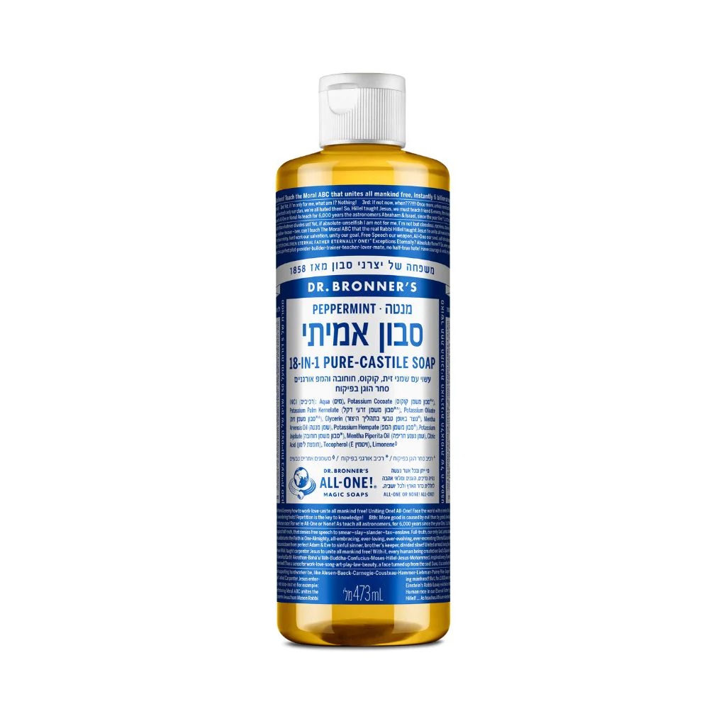 סבון Dr. Bronner’s מנטה 18-ב-1 מציע נוסחה טבעית ורב־תכליתית לניקוי יעיל של הגוף והבית. הסבון מתאים לשטיפת פנים, גוף ושיער, לצד ניקוי משטחים, אמבטיות, כלים, כביסה ורחצת בעלי חיים. הפורמולה מרוכזת במיוחד ולכן דורשת דילול, ומעניקה תחושת ניקיון רעננה ללא מרכיבים סינתטיים.