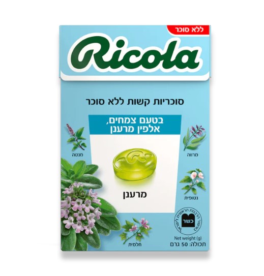 סוכריות ריקולה ללא סוכר, המבוססות על תערובת צמחים מסורתית מהאלפים השוויצריים. שילוב של צמח אלפין, שמן מנטה־פפרמינט, קמומיל, לימון וטימין מעניק פרופיל טעם עוצמתי, פרשי וצלול, בהשראת אוויר ההרים האלפיני.