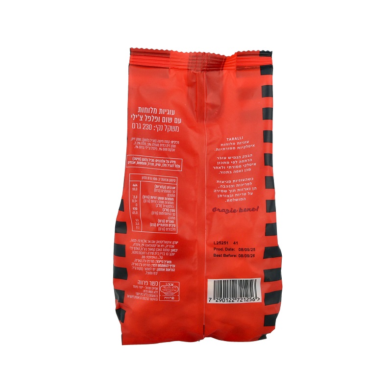 עוגיות איטלקיות מסורתיות עם שום פלפל צ'ילי המיוצרות בתהליך ייחודי שבו הבצק עובר הרתחה לפני האפייה בתנור. תהליך זה מעניק לעוגיות את המרקם הקריספי והזהוב המאפיין אותן.
