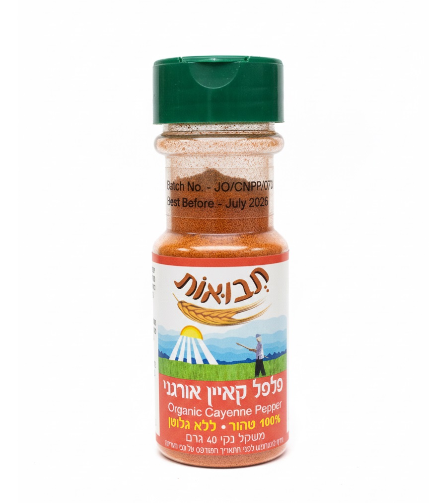 פלפל קאיין אורגני של תבואות מופק מפלפל חריף מיובש ונטחן. הקאיין מעניק עומק וחום טבעי למאכלים, ומשתלב מצוין בתבשילים, מנות אסיאתיות, מרקים, תערובות תבלינים ותבשילי קטניות. בזכות חריפותו הנקייה והמאוזנת, הוא מוסיף נוכחות מבלי להשתלט על המנה.