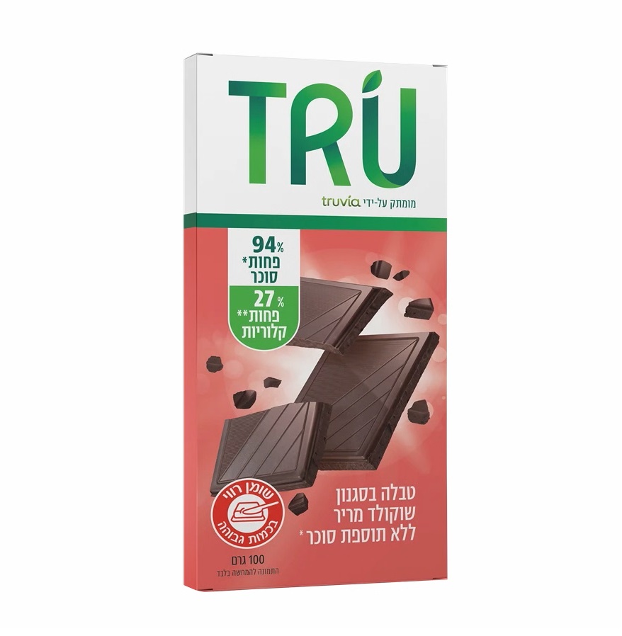 טבלת השוקולד המריר של TRÚ מזמינה אתכם ליהנות מחוויית קקאו עשירה מבלי להתפשר על התזונה שלכם. בזכות השימוש בממתיק Truvia, השוקולד מציע מתיקות מעודנת ללא תוספת סוכר ועם 94% פחות סוכר בהשוואה לשוקולד מריר סטנדרטי. עם 27% פחות קלוריות, זהו הפתרון האידיאלי לרגעים של חשק למשהו מתוק, המעניק את כל העומק של שוקולד מריר איכותי בפורמולה מופחתת קלוריות שמשתלבת נהדר באורח חיים מודע.