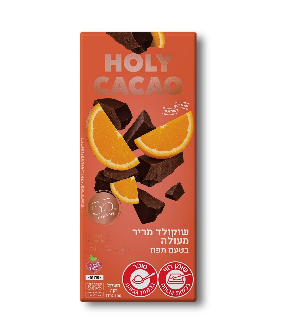 שוקולד מריר איכותי עם 55% קקאו, משולב בטעם תפוז טבעי ומרענן. טבעוני, בעל טעם עשיר ומאוזן ומרקם חלק וקרמי, מתאים לנשנוש, קינוחים או כתוספת מיוחדת למתכונים.
