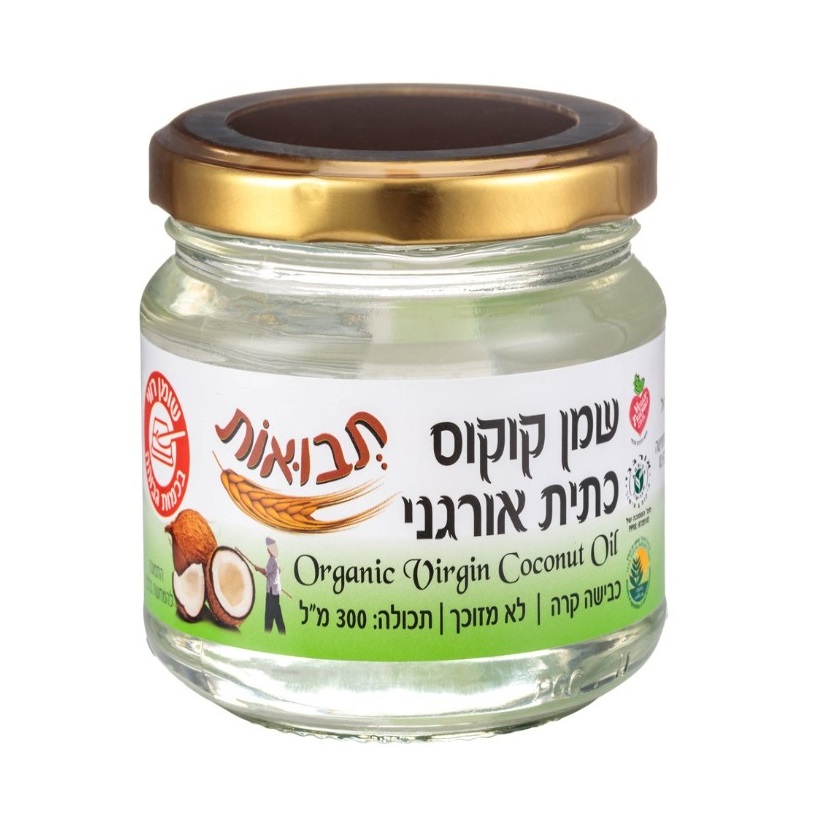 שמן קוקוס כתית אורגני בכבישה קרה מבית תבואות. שמן טהור ולא מזוכך, השומר על טעמו וערכיו התזונתיים. מתאים לבישול, אפייה, טיגון ולשימוש קוסמטי טבעי לעור ולשיער.