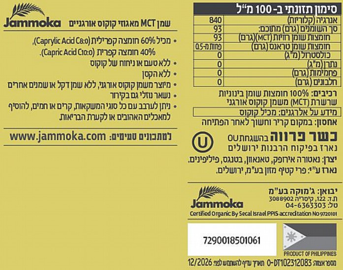 שמן MCT אורגני טהור, עשוי מאגוזי קוקוס טריים הגדלים בתנאים אורגניים. דרך קלה ובריאה להוסיף שומן איכותי לתפריט היומי – בלי טעם קוקוס ובלי תוספים מיותרים.